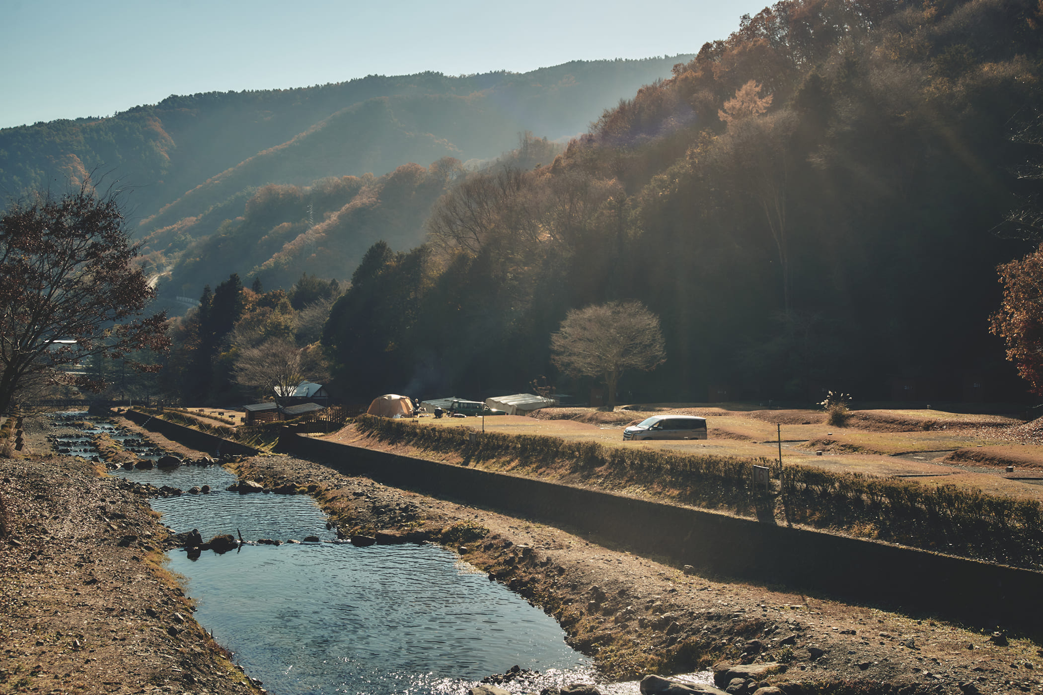 川沿いのキャンプサイトに到着